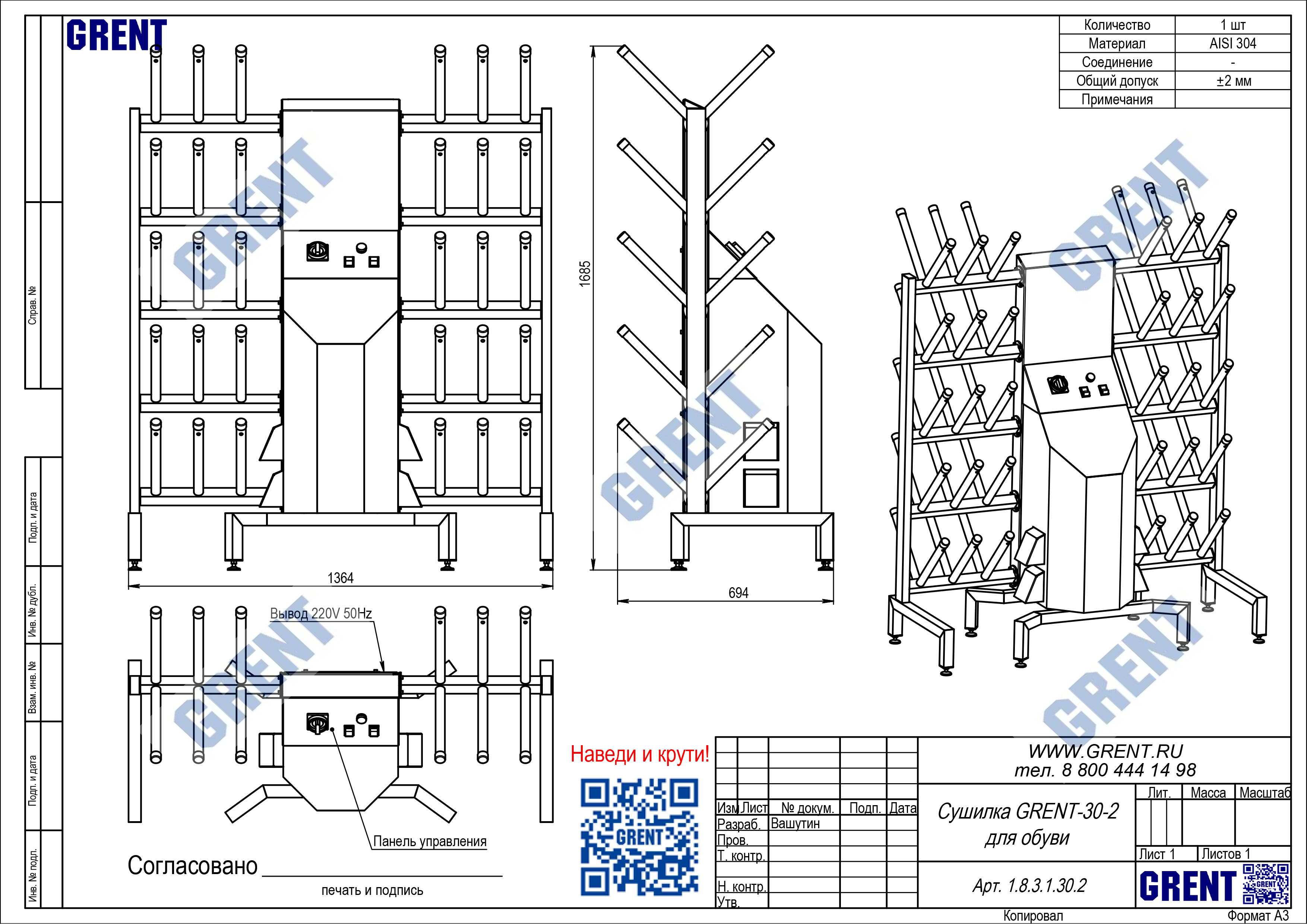 - материал — нержавеющая сталь AISI 304